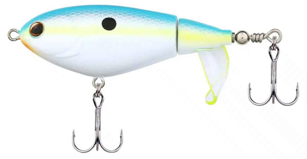 De duurzame propellerstaart van de Choppo smelt niet in de kunstaasdoos en het grotere oppervlak van deze bait