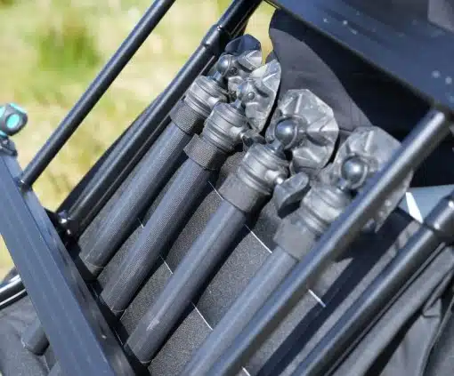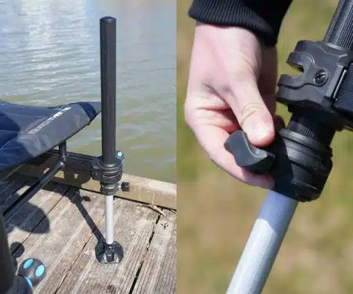 visaccessoires, zoals hengelsteunen, aastafels en feederarmen. Elke poot heeft zelfs een ingebouwde schroefdraad aan
