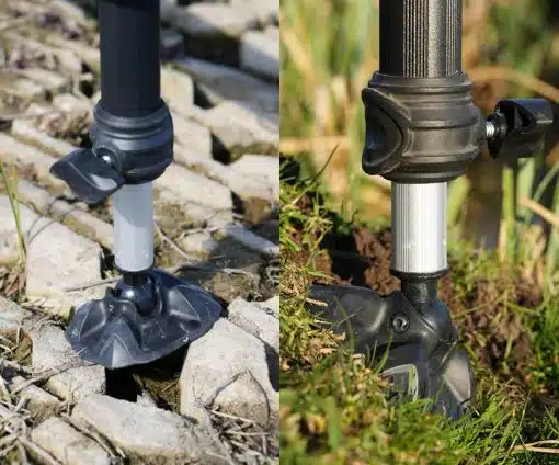 Elke poot wordt vastgezet met ergonomische, draaibare vergrendelknoppen, voor snelle en stevige aanpassingen zonder
