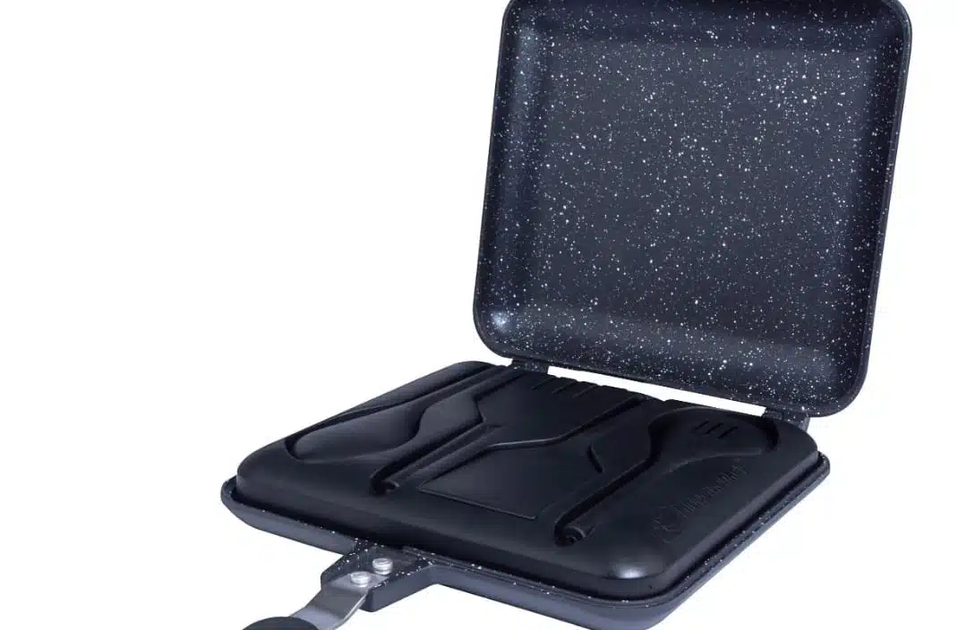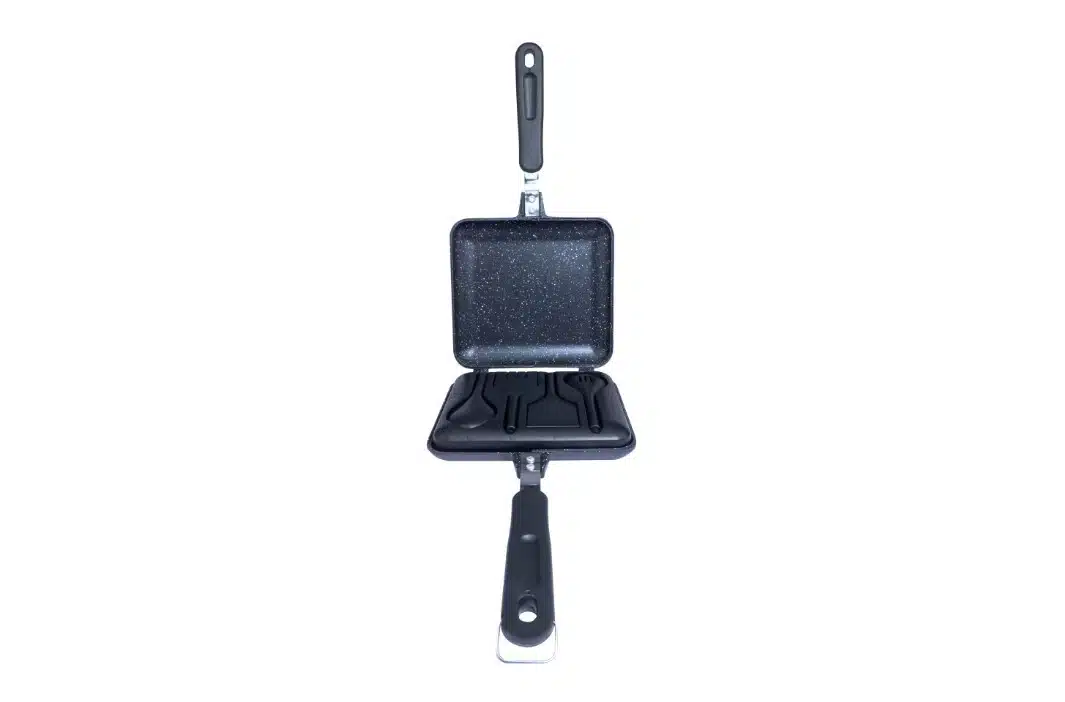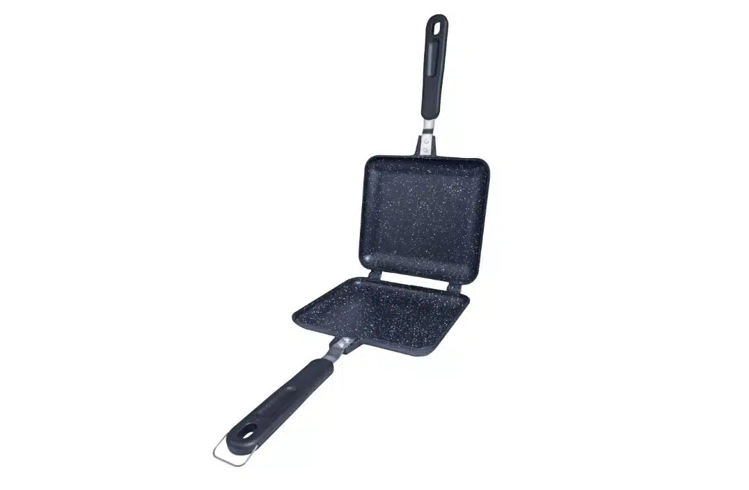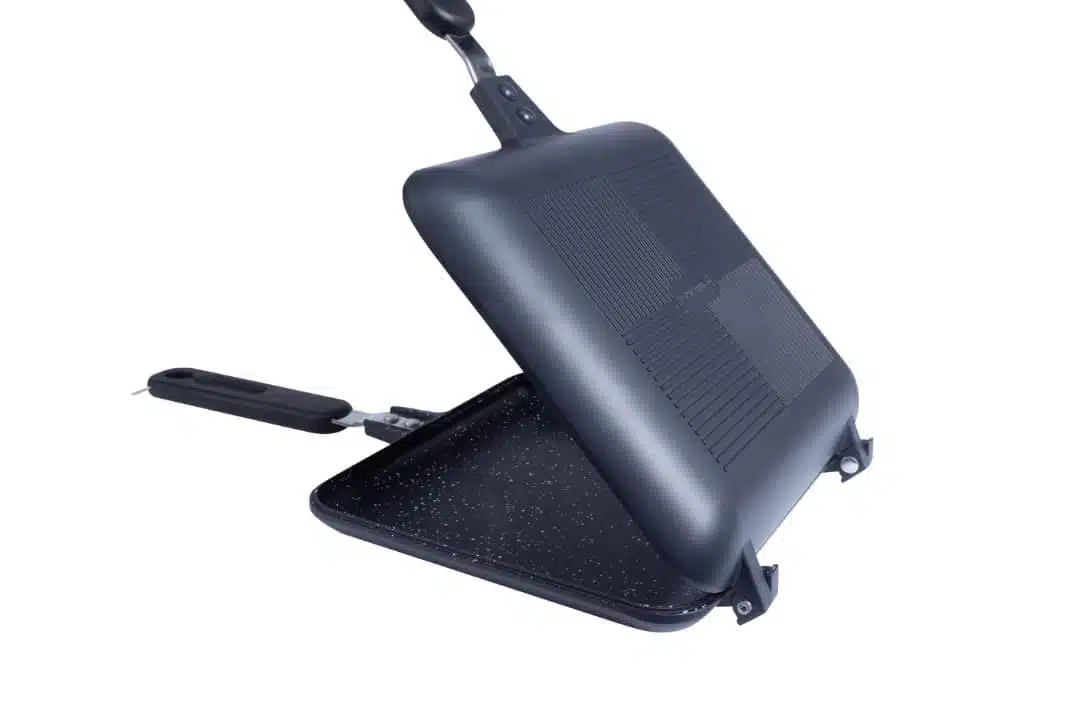 De RidgeMonkey Connect Sandwich Toaster XL Granite Edition heeft afneembare cool-touch handgrepen, een afneembaar