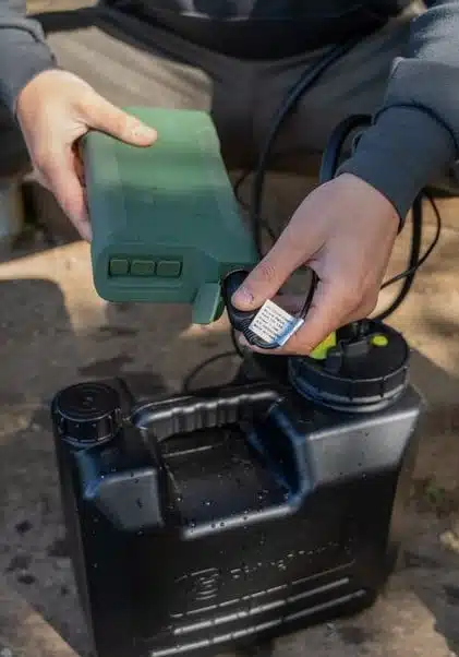 De RidgeMonkey Outdoor Power Shower is compatibel met elk apparaat dat een constante 12V 2A-voeding levert,