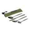 De Trakker Armolife Bestekset is compact en handig en is een vierdelige set bestaande uit een roestvrijstalen mes,